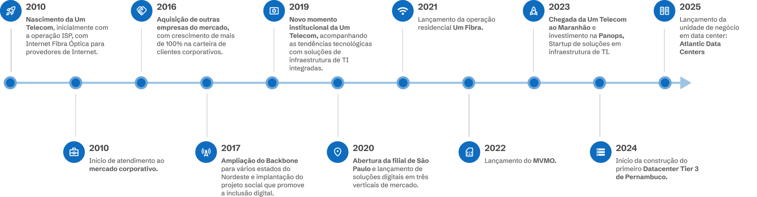 Fundada em 2010, a Empresa atende os mercados de provedores regionais, operadoras, setor público e consumidores finais corporativos, com operações em todos os estados da região Nordeste e em São Paulo e no Rio de Janeiro.